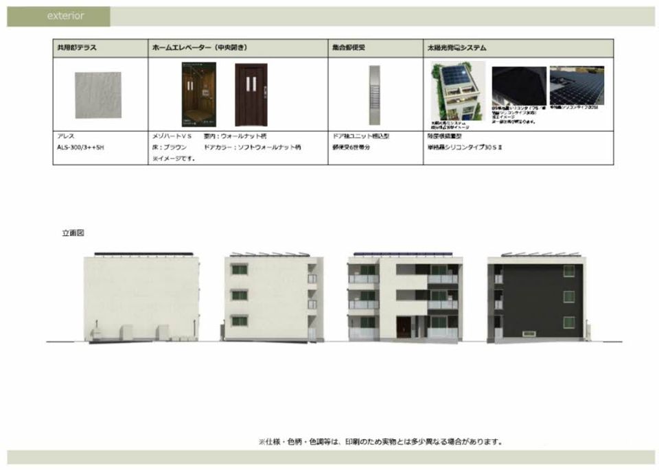 公営水道、駐輪場、エレベーター、太陽光発電システム、宅配ボックス、敷地内ごみ置場