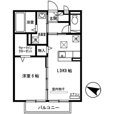 エアコン、バルコニー、床下収納、洗面所独立、プロパンガス、室内物干し、インターネット無料、TV付インターホン、シューズボックス、洗髪洗面化粧台、ウォークインクローゼット、室内洗濯機置場、フローリング、洗面台、収納