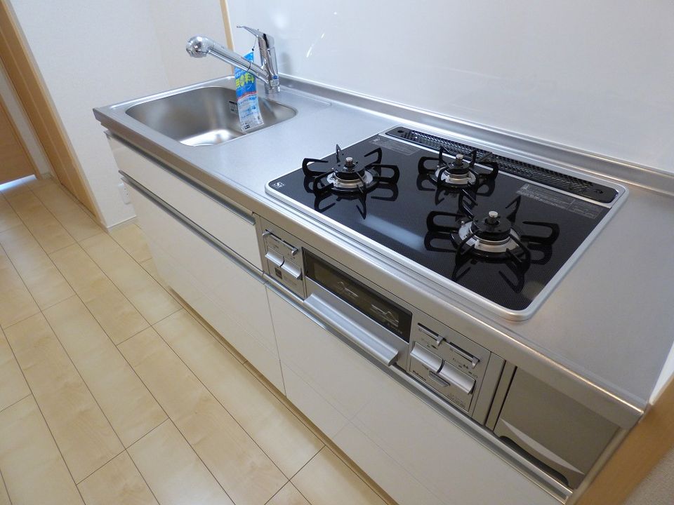 システムキッチン、ガスコンロ3口以上、グリル、浄水器(別途カートリッジ代が必要)