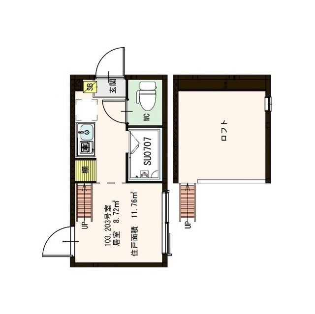 1R / 11.76m2 / 2階(2階建)