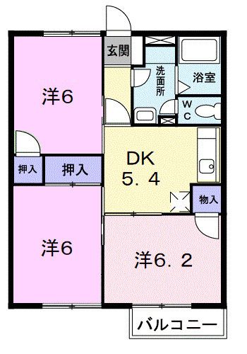 3DK / 53.82m2 / 2階(2階建)