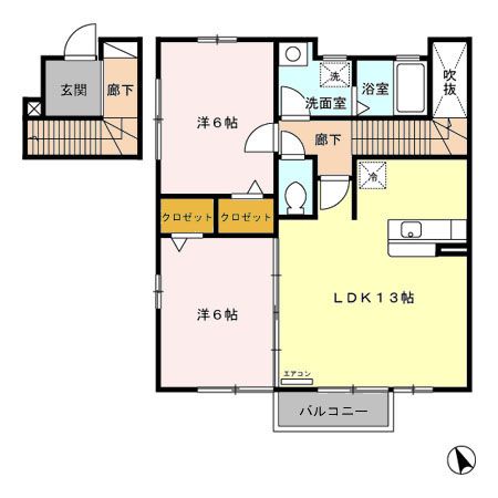2LDK / 60.74m2 / 2階(2階建)
