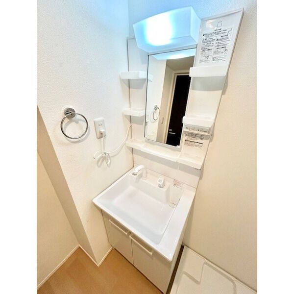 朝や就寝前がラクラクの、独立した洗面所の物件。モニターで来訪者を確認し、インターホンで対面せずに会話することができます。エアコン付きのアパートなので、快適に生活できます。
