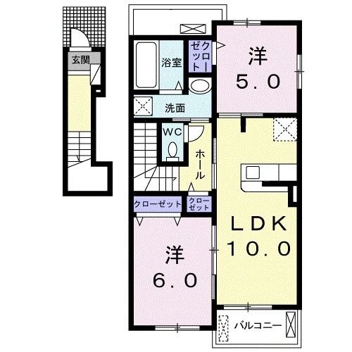 2LDK / 53.75m2 / 2階(2階建)