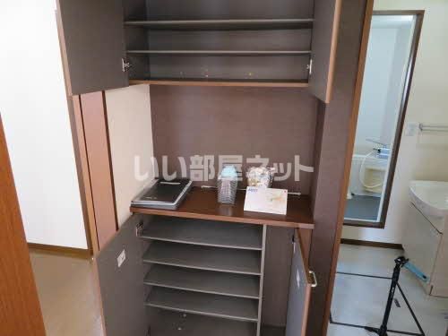 独立洗面台はコンセントや照明、大きな鏡などがついているので化粧や身支度の際に便利です。収納はクロゼット・シューズボックス・全居室収納などが備え付けられているので、衣類や日用品の収納に重宝します。