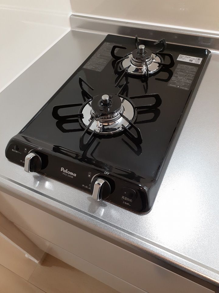システムキッチン、ガスコンロ2口以上、浄水器(別途カートリッジ代が必要)