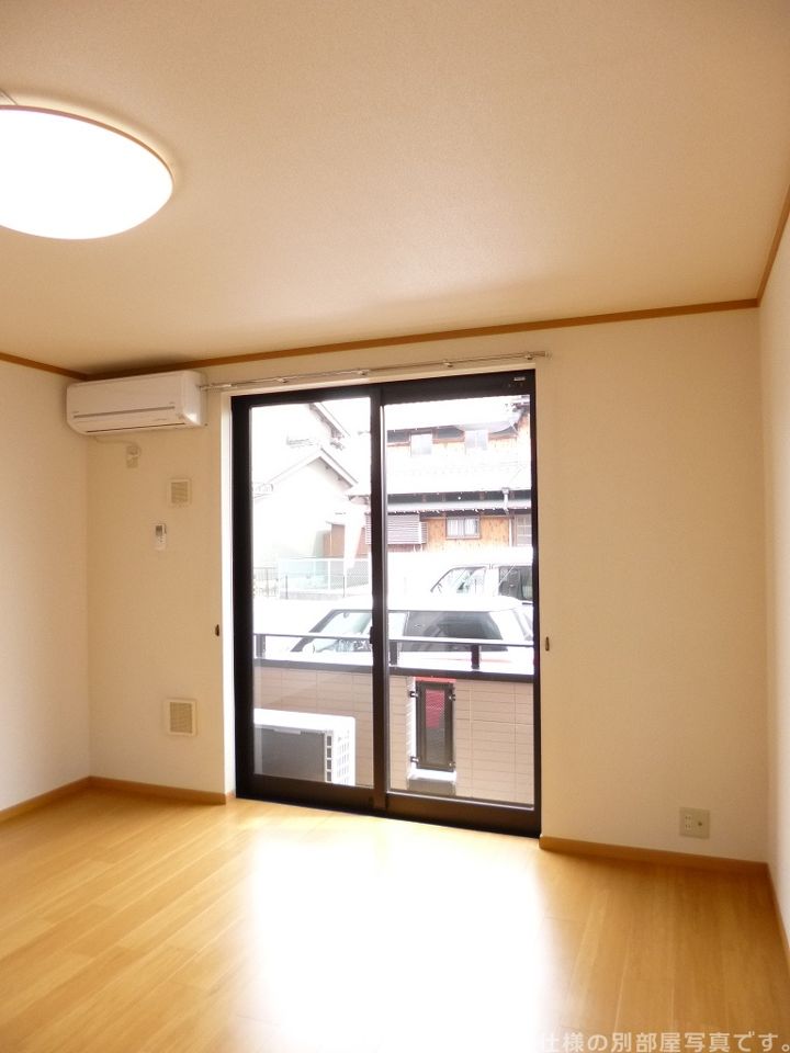 エアコン、バルコニー、BS、クローゼット、階段下収納、複層ガラス、洗面化粧台、洗面所独立、24時間換気システム、プロパンガス、給湯、TV付インターホン、シューズボックス、照明、セキュリティーキー、シャッター雨戸、室内洗濯機置場、フローリング、洗面台、雨戸、収納