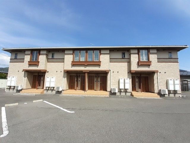 アクシア グミの木は、長野県岡谷市長地権現町2丁目にある2階建の賃貸アパートです。中央線 下諏訪駅 徒歩20分の距離にあります。2013年5月に完工し、建物の構造は木造です。