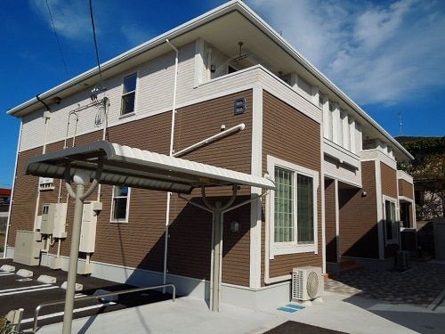 リバーサイド・鴨山Bは、島根県益田市高津1丁目にある2階建の賃貸アパートです。山陰本線 益田駅 徒歩24分の距離にあります。2015年3月に完工し、建物の構造は木造です。