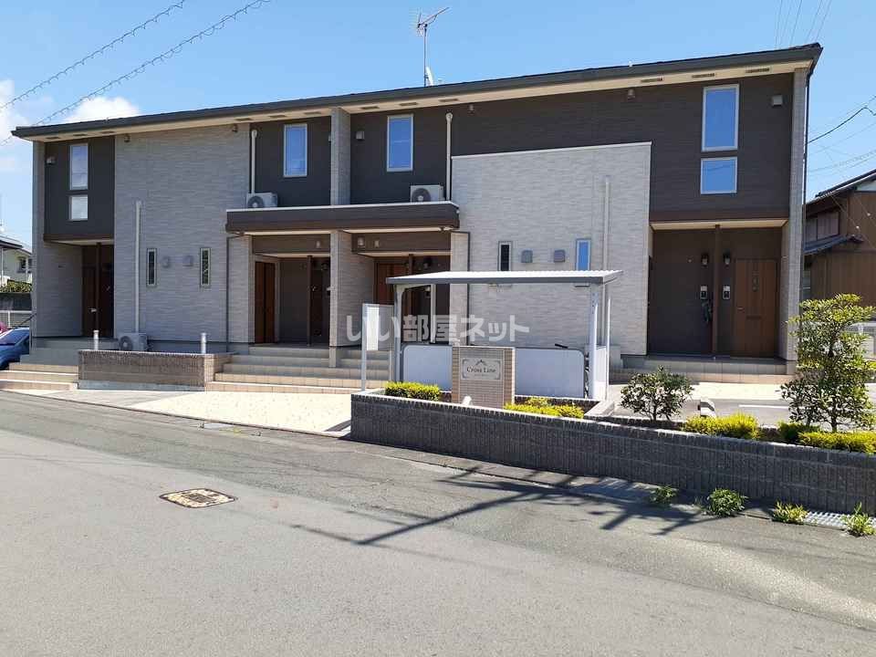 クロスラインは、静岡県掛川市高御所にある2階建の賃貸アパートです。天竜浜名湖鉄道 掛川市役所前駅 徒歩19分の距離にあります。2016年9月に完工し、建物の構造は木造です。
