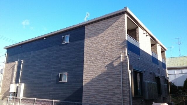 暮らしの利便性を追求した賃貸住宅。大きな荷物も収納できるマルチクロークや在宅ワークに便利なマルチデスクなど、豊富なアイテムが特徴。落ち着きある自然な風合いの外壁材を組合せ、アルミのシャープな素材感がアクセントの建物です。