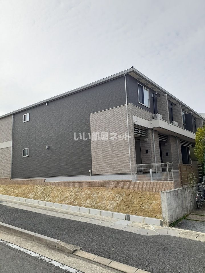 暮らしの利便性を追求した賃貸住宅。大きな荷物も収納できるマルチクロークや在宅ワークに便利なマルチデスクなど、豊富なアイテムが特徴。落ち着きある自然な風合いの外壁材を組合せ、アルミのシャープな素材感がアクセントの建物です。