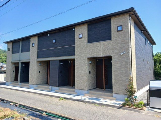 ラーゴム Bは、山口県周南市大字久米にある2階建の賃貸アパートです。山陽本線 徳山駅からバスにて25分 久米温泉口下車 徒歩5分の距離にあります。2025年8月に完工し、建物の構造は木造です。