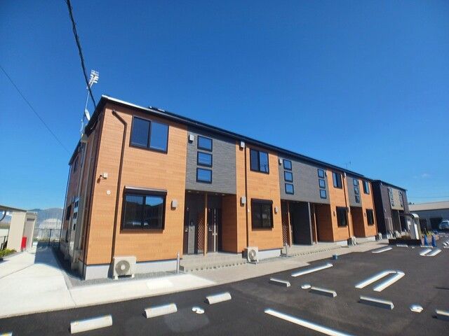 グラン・リーオJは、福岡県遠賀郡遠賀町大字今古賀にある2階建の賃貸アパートです。鹿児島本線 遠賀川駅 徒歩17分の距離にあります。2025年7月に完工し、建物の構造は木造です。