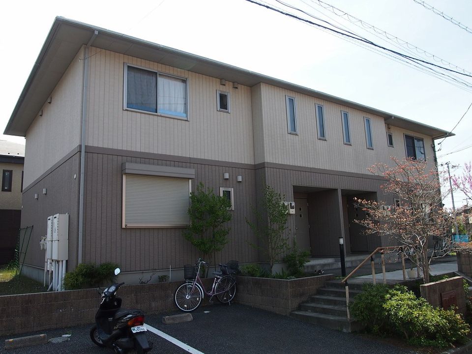 静かな住宅街にあるアパート、コンビニ複数あるしスーパーやドラッグストアある。飲食店も。都会的70点田舎的30点くらい車でも自転車でも通勤しやすい。