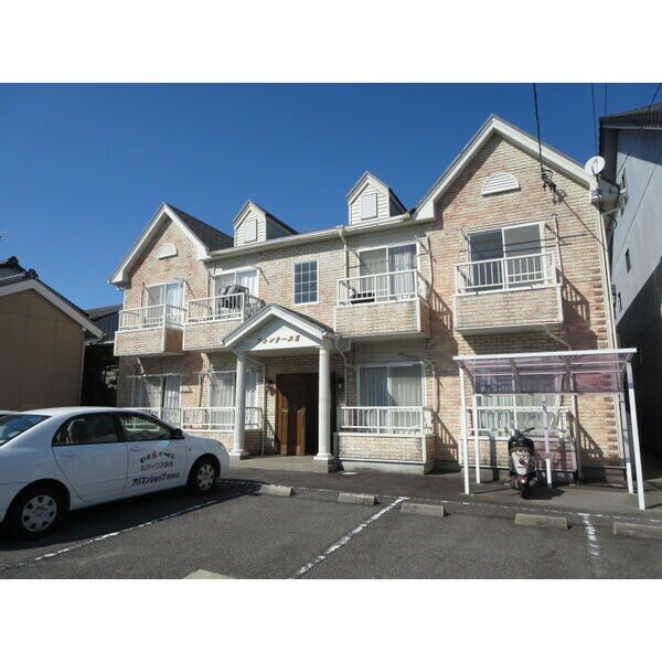 フォンテーヌ IIは、愛知県岡崎市明大寺町字天白前にある2階建の賃貸アパートです。名鉄名古屋本線 東岡崎駅 徒歩8分の距離にあります。1997年3月に完工し、建物の構造は木造です。