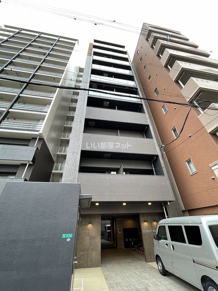 FOREST NANBAは、大阪府大阪市浪速区戎本町2丁目にある10階建の賃貸マンションです。地下鉄御堂筋線 大国町駅 徒歩8分の距離にあります。2019年6月に完工し、建物の構造は鉄筋コンクリートです。