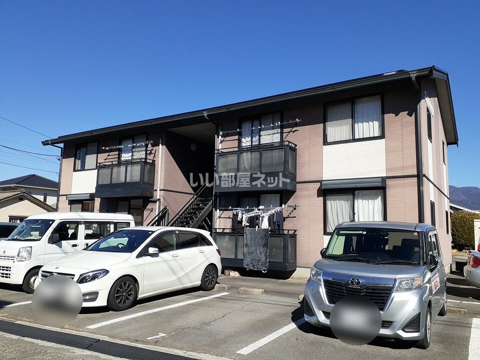エレガントハイツBは、山梨県甲府市上石田2丁目にある2階建の賃貸アパートです。中央線 甲府駅 徒歩28分の距離にあります。1998年1月に完工し、建物の構造は木造です。