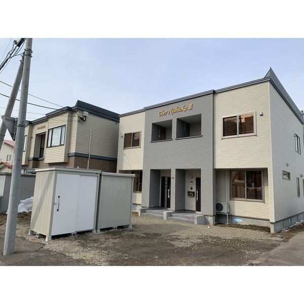 シェール西岡Ⅲは、北海道札幌市豊平区西岡三条1丁目にある2階建の賃貸テラスハウスです。地下鉄東豊線 月寒中央駅 徒歩20分の距離にあります。2022年3月に完工し、建物の構造は木造です。